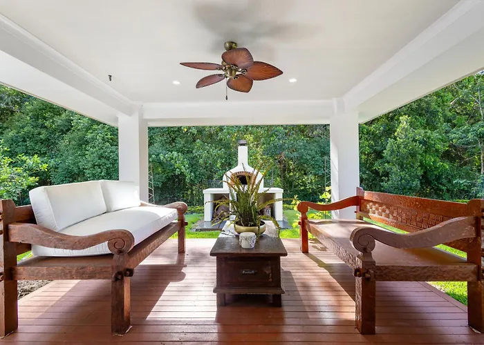 Situated 2 km from the Maroochy Regional Bushland Botanic Garden, Eden Paradise Sunshine Coast - Luxury Home Tanawha invites guests to relax at a terrace.